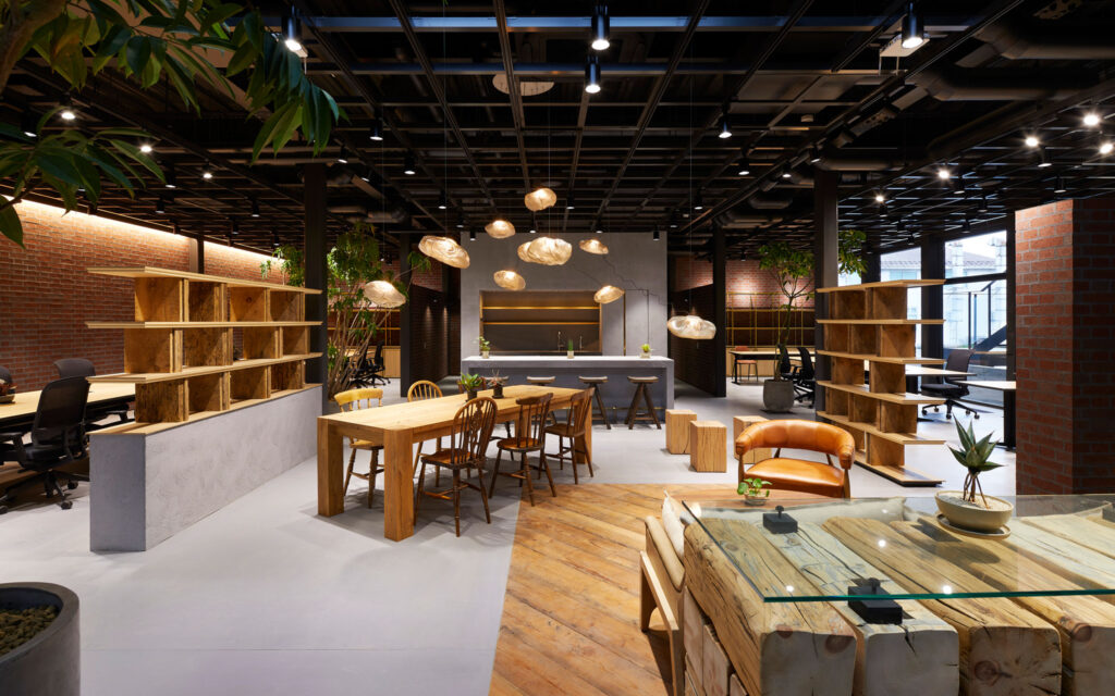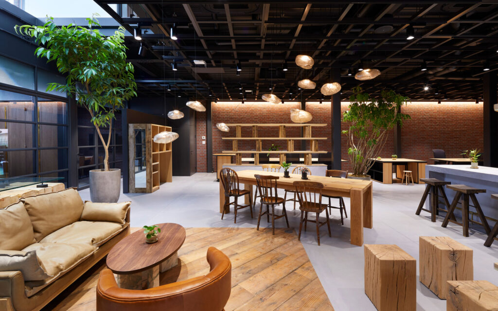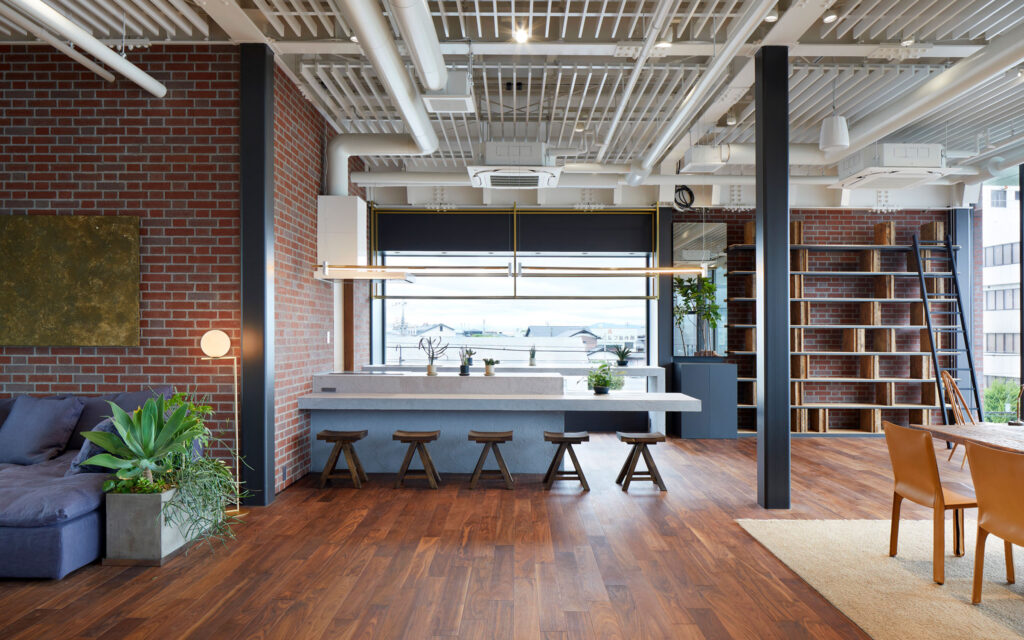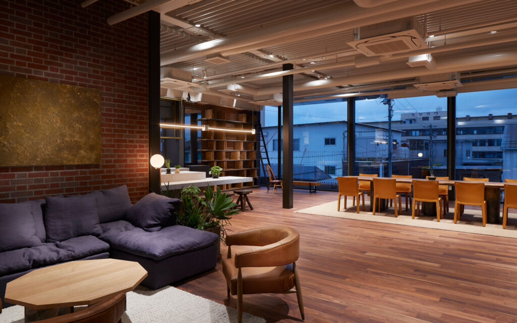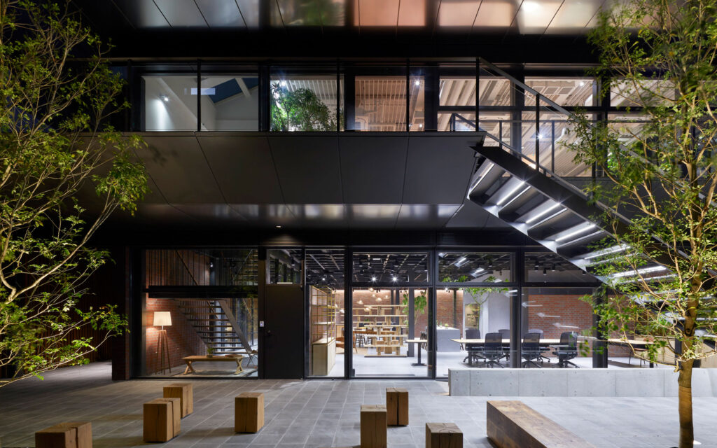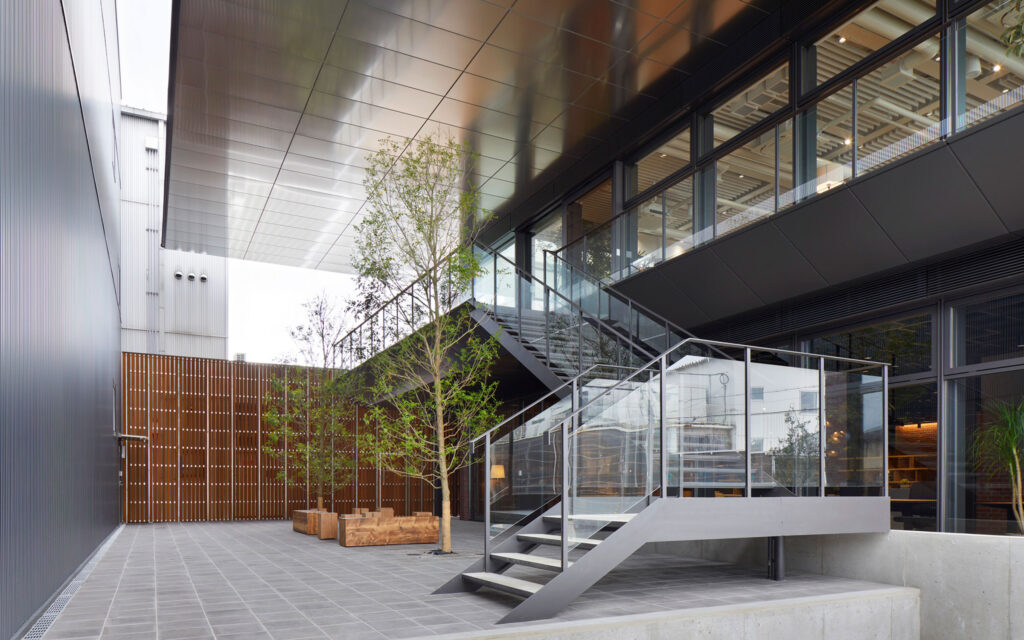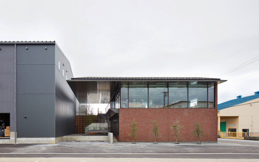 This is the head office of KINTO, a company based in Hikone-City. A defining feature of the building is the large under-eave space created between the office and the company’s adjacent logistics warehouse. This expansive eave is formed by cantilevered beams with a depth of 500 mm, spaced at 2-meter intervals.